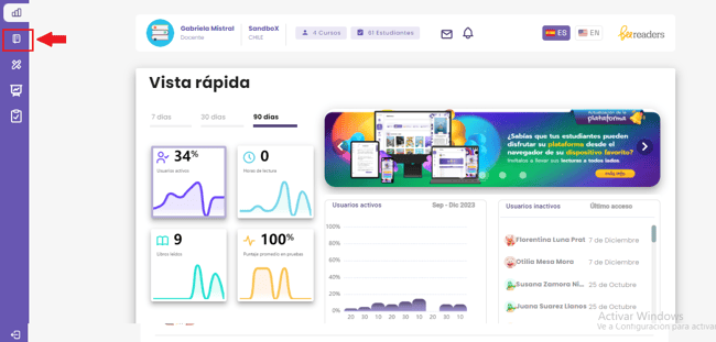 Además, en la parte superior derecha aparecen algunos libros destacados por ser parte de las novedades; también puedes seleccionar estos títulos para asignarlos a tu clase.
