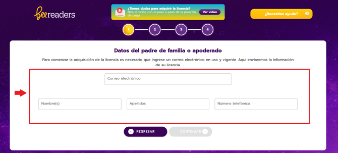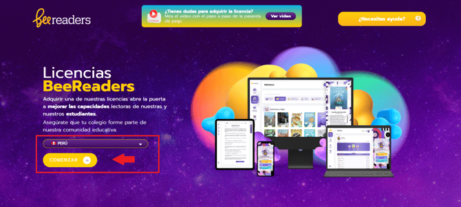 Ingresa a nuestra página web: www.beeverso.org y haz clic en la opción Licencias. También, puedes escanear el código QR del folleto BeeReaders.
