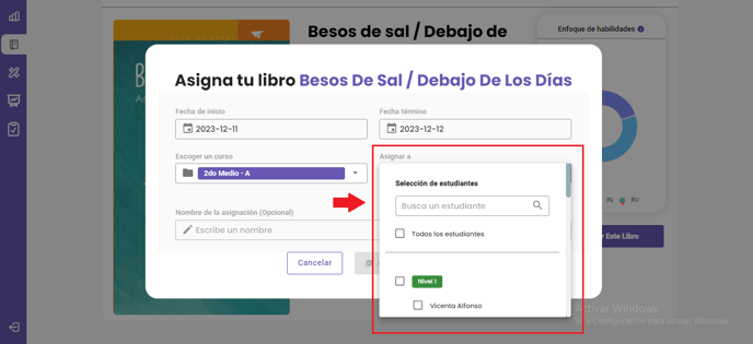 Primero, te invitamos a revisar nuestro artículo ¿Cómo asignar un libro a la clase? hasta el paso 4, para que conozcas el proceso básico para asignar un libro.