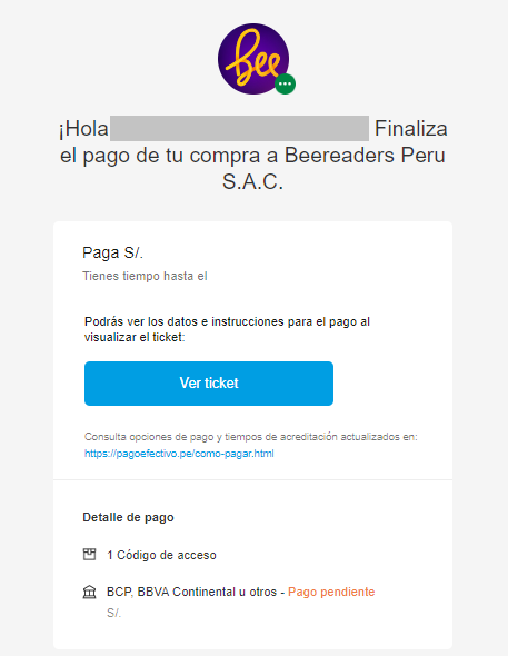 Si avanzaste en el proceso de adquirir la licencia Beeverso y seleccionaste las opciones Transferencia vía Pagoefectivo o Depósito por Pagoefectivo, y no tomaste nota ni hiciste captura de pantalla del código de pago (CIP), aquí te contamos dónde encontrarlo.
