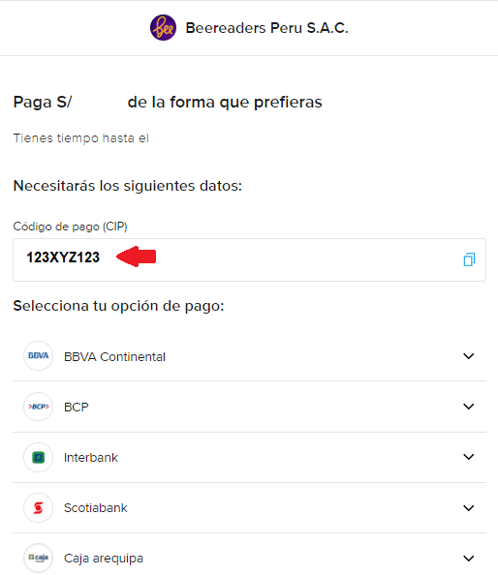 Recuerda: El código CIP solo es válido por 2 días. Pasado ese tiempo, será necesario que realices una nueva transacción en nuestra pasarela de pagos para obtener otro código.