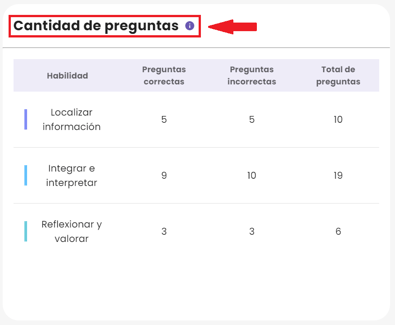 3. Cantidad de preguntas: La tabla muestra cuántas preguntas tienen los libros asignados, asà como la cantidad de respuestas correctas e incorrectas de tus estudiantes. Esto ayuda a interpretar el gráfico Resultados de libros asignados.