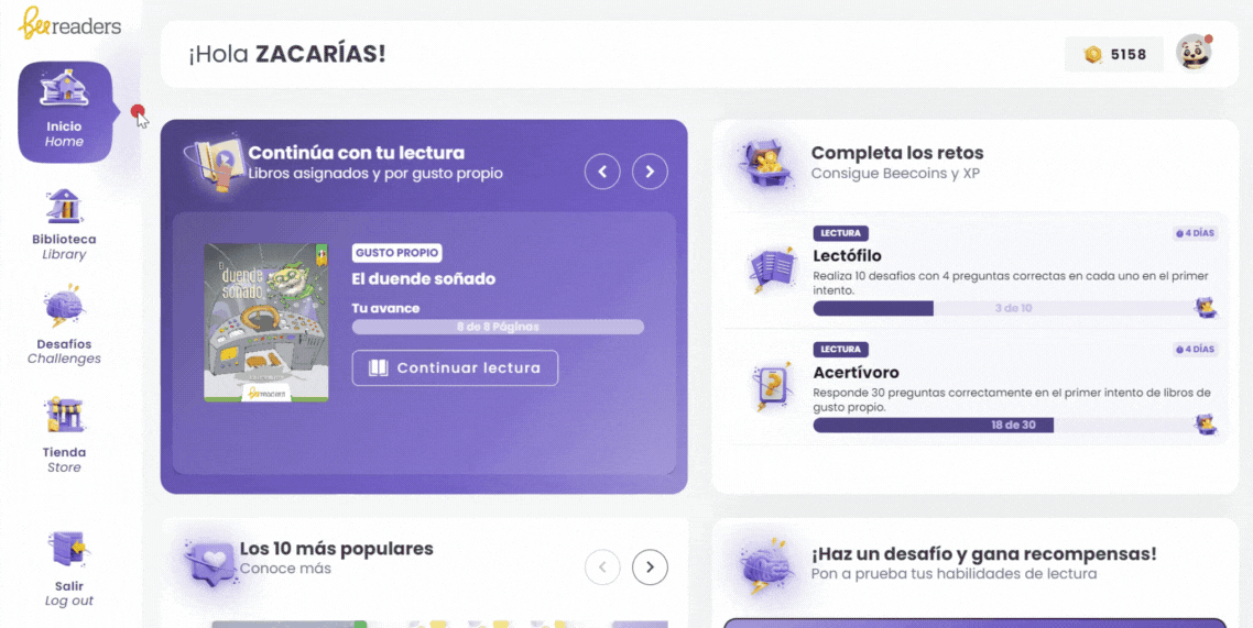 Los desafíos son textos cortos con 4 preguntas cada uno; tienes hasta 3 oportunidades para resolverlos. Te otorgamos recompensas (BeeCoins y XP) según la cantidad de aciertos.